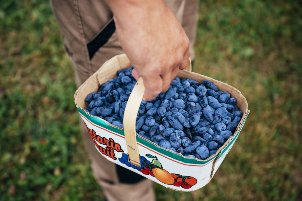 La saison de la camerise débute habituellement fin juin, début juillet et se poursuit jusqu’au début août. Plus la saison avance, plus les camerises deviennent sucrées! Celles que l’on peut cueillir à Notre-Dame-du-Nord se divisent en 5 différentes variétés selon la saison: Tundra, Boreal Blizzard, Aurora, Boreal Beauty et Boreal Beast. Le site est ouvert au public du jeudi au dimanche de 7 h à 17 h, peu importe la température. Le sympathique propriétaire, Shayne Dubé, prête des petites chaises et fournit toutes les indications pour rendre votre expérience agréable. Des casseaux de camerises déjà cueillies sont aussi en vente au kiosque d’accueil. Le tout payable en argent comptant ou par virement bancaire.