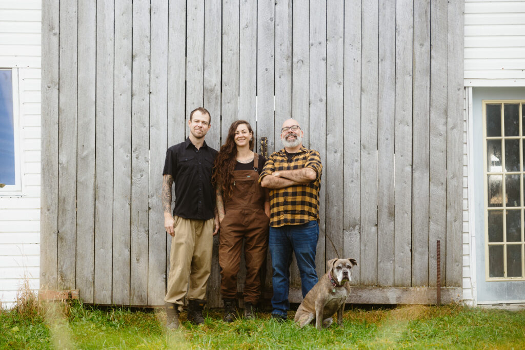 Jonathan Marquis, Caroline Trudel et Louis-Éric Gagnon de la Ferme Dharma. Photo: Audrée Giroux photographe